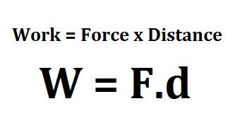 Work – a force acting upon an object to cause a displacement. Work is only done if the object is moved so if two equal forces push on a object in separate directions there is no work being done.